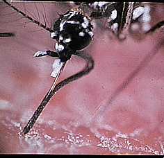 Solo la femmina punge poiché ha bisogno di sangue per la maturazione delle uova. La zanzara acquisisce il virus pungendo una persona ammalata nella fase di viremia (precede di 24 ore le manifestazioni cliniche e può durare anche 7 giorni) e diventa infettante nel giro di 10 giorni, tempo necessario perché il virus si moltiplichi e raggiunga le ghiandole salivari (ciclo estrinseco).
