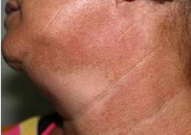 EFF begins on the preauricular cheeks and gradually can spread till the submandibular areas of the neck (in this case the disease is called erythromelanosis follicularis faciei et colli – EFFC)